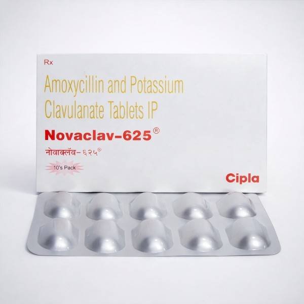 Novaclav–625 Tablet is a prescription antibiotic medicine designed to manage a wide range of bacterial infections. It combines a penicillin-class antibiotic with a beta-lactamase inhibitor to improve effectiveness against resistant bacteria.