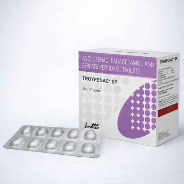 TROYFENAC® SP Tablet is a prescription-based combination medicine formulated to manage pain, inflammation, and swelling. It is commonly prescribed for acute painful and inflammatory conditions where effective pain control and faster recovery are required.